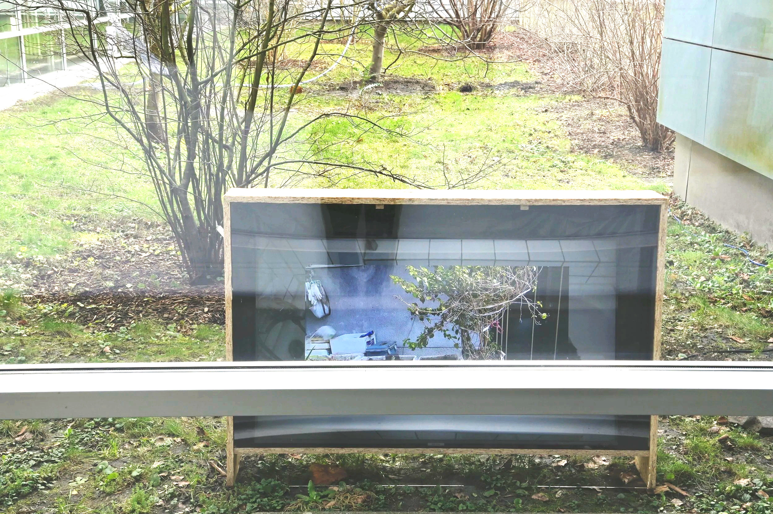 This unique space has hosted performances and readings by artists we invited from both inside and outside the art academy Münster. Through these special events, this place has transformed into an exchange and meeting space in an extraordinary manner—quieter and more physically engaging.
